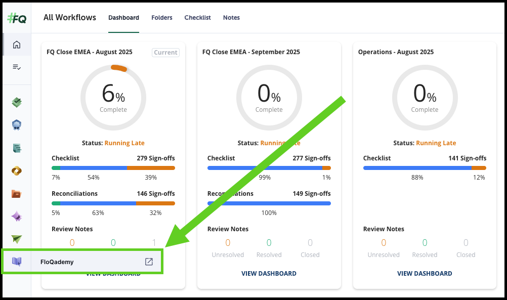 If the FloQademy logo isn't visible in your FloQast account, please contact your Accounting Success Manager or support@floqast.com to enable the FloQademy button.