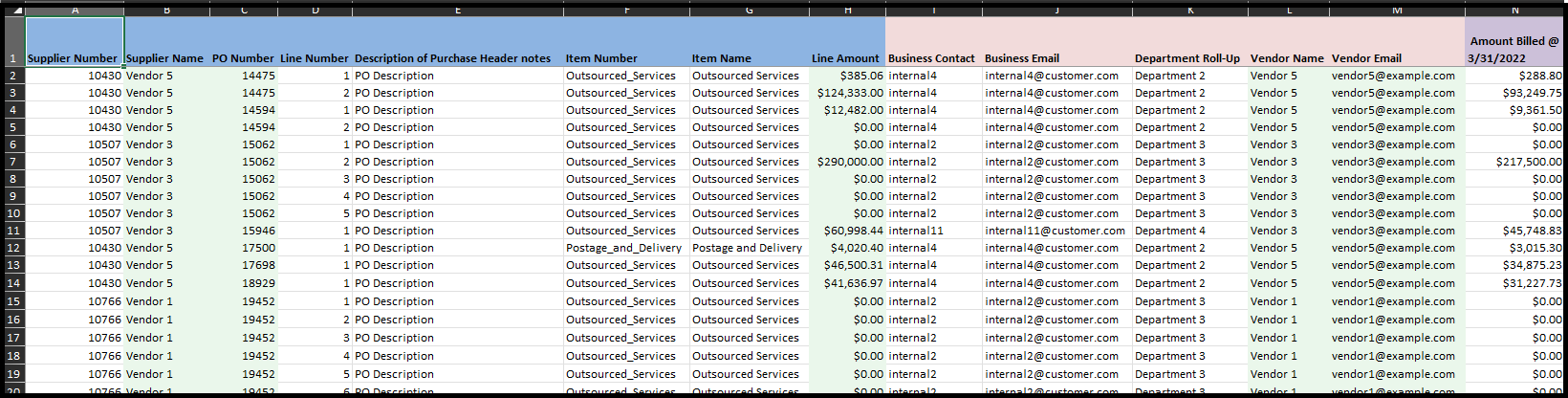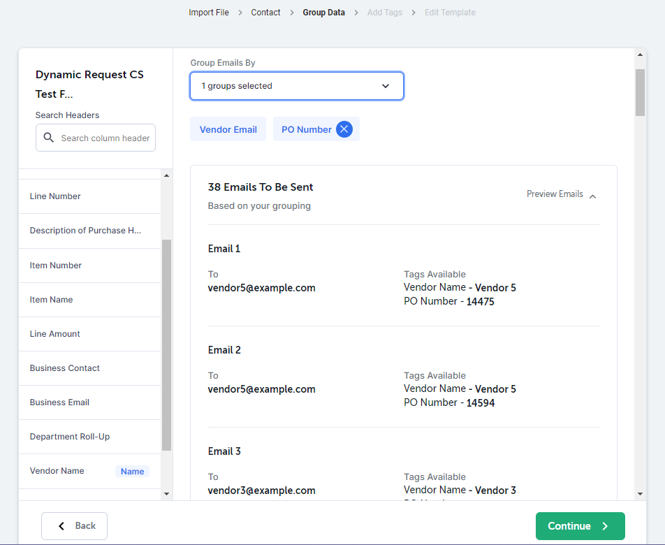 Select which column(s) to group your emails by. For example, if you group by PO Number, your recipients will get a separate email based on each individual PO Number: