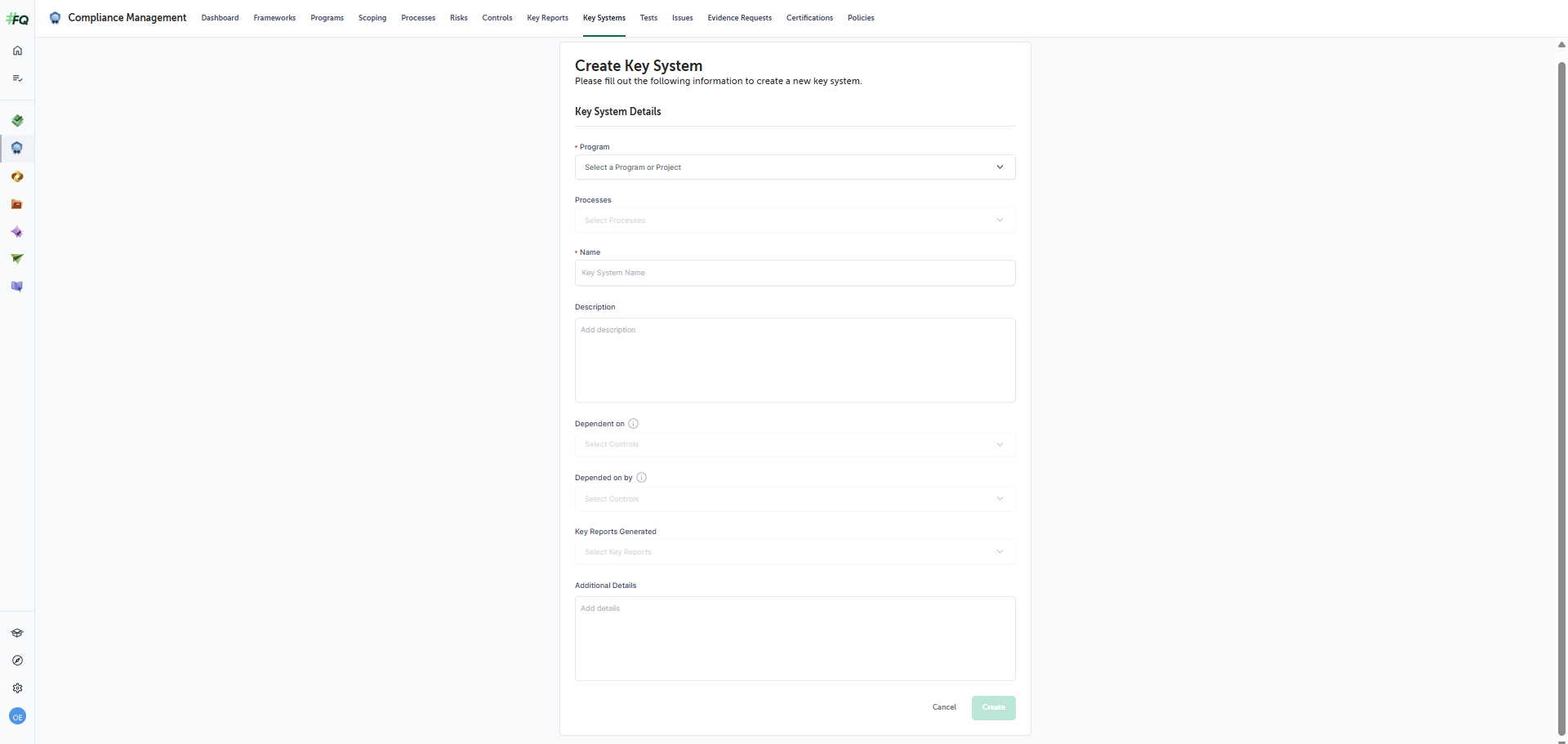 Compliance Program (Required): Select the Compliance Program you are creating the Key System for