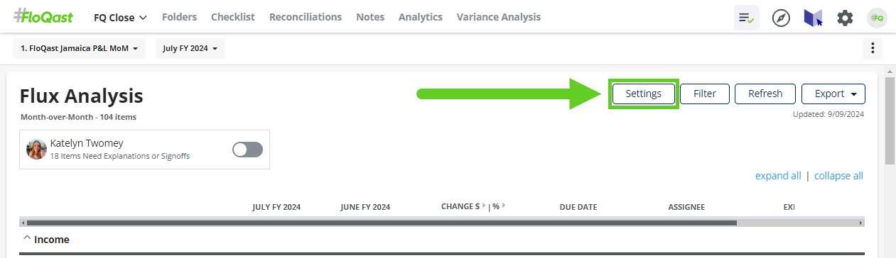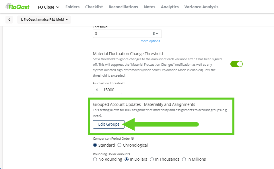 To access this feature, navigate to the Settings page of the Variance Analysis report you want to update and click the “Edit Groups” button under the General Settings section: