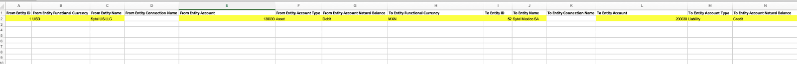 If a NetSuite and an enhanced data connection customer, populate this column with the Name of the Active Connection for the applicable To Entities. For manual loads, leave the column blank.