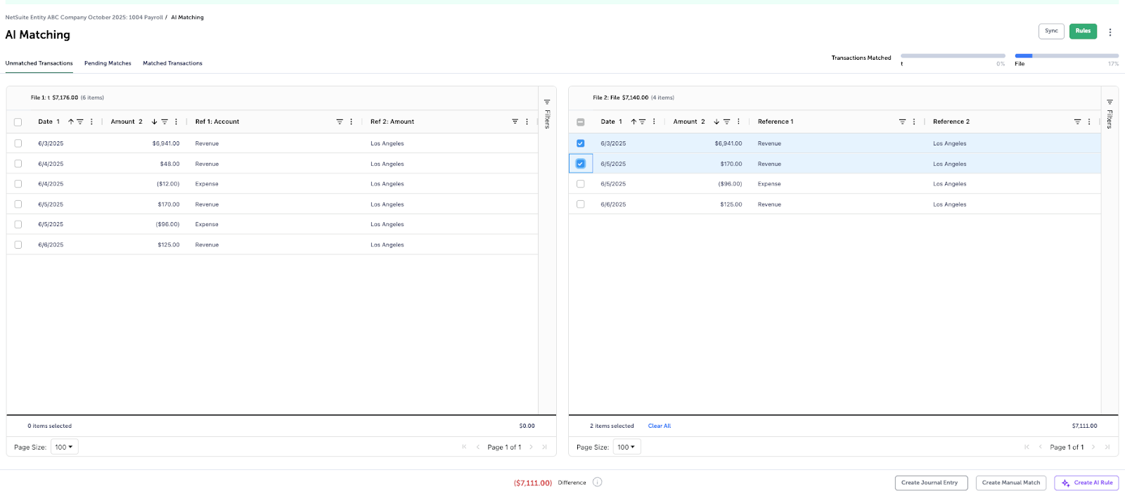 Creating Journal Entries from AI Matching