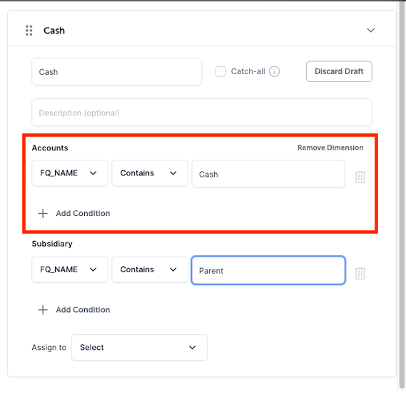 The rule builder now includes Account as a selectable condition for secondary mapping, providing more granular control over your data sets. This update allows you to define multiple account-level rules within a single mapping tab, significantly reducing the number of tabs required for complex configurations.