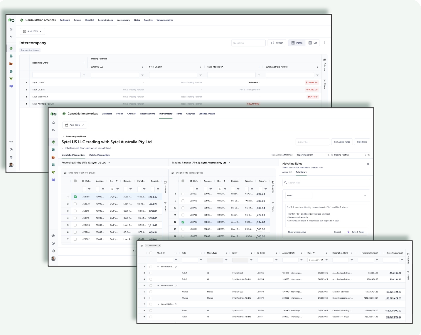 - Matrix & List Views provide interactive ways to visualize and assess intercompany balance issues