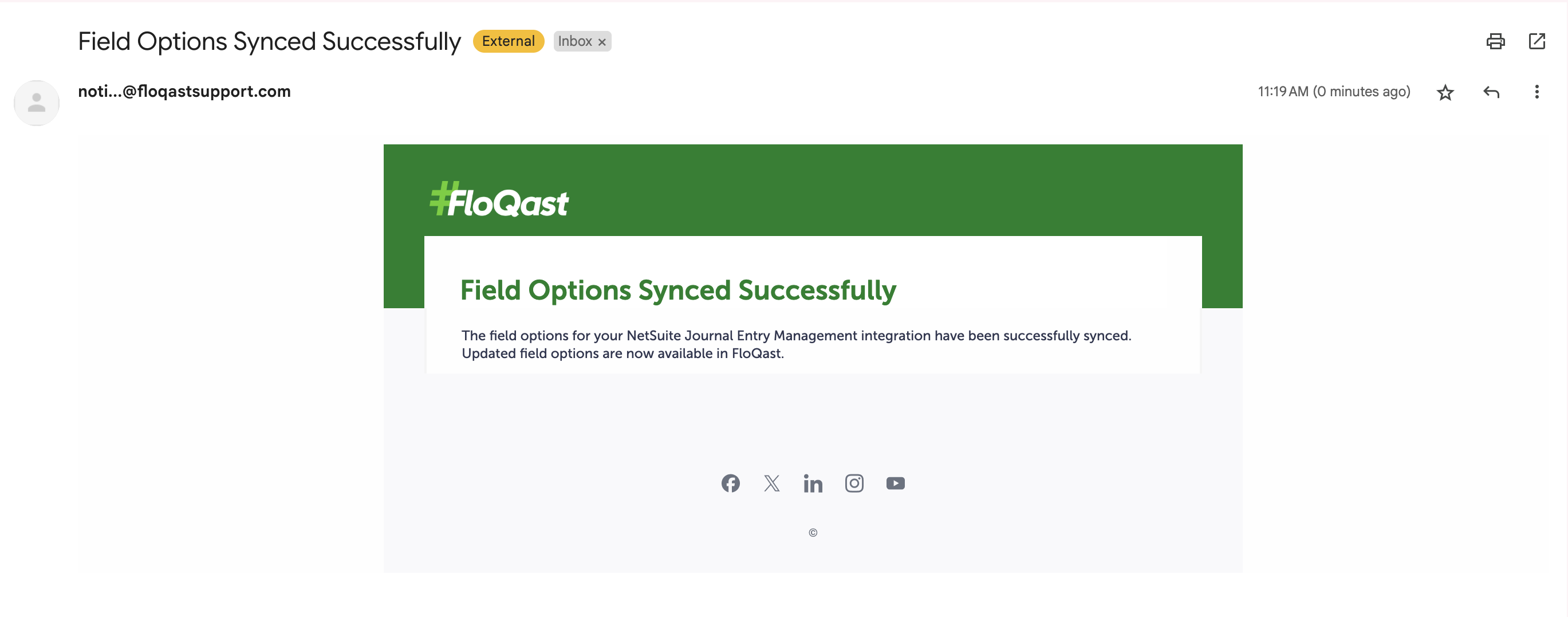 We've improved the data sync experience for Journal Entry Management users connected to NetSuite. You can now start a sync and navigate away—FloQast will continue processing in the background and notify you by email once it’s complete. This update resolves issues for customers with large data sets and speeds up onboarding.
