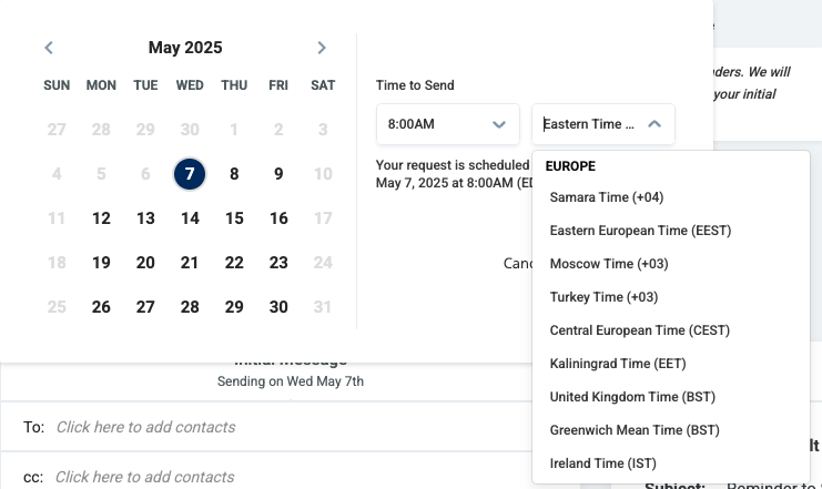 We’ve made several updates to improve how you create and manage Requests in ReMind. You can now view email address and company name details directly in the inbox preview, with improved visibility into failed sends. Linked Checklist details are now accessible at a glance, and timezone selection has been expanded to include all FloQast supported timezones.